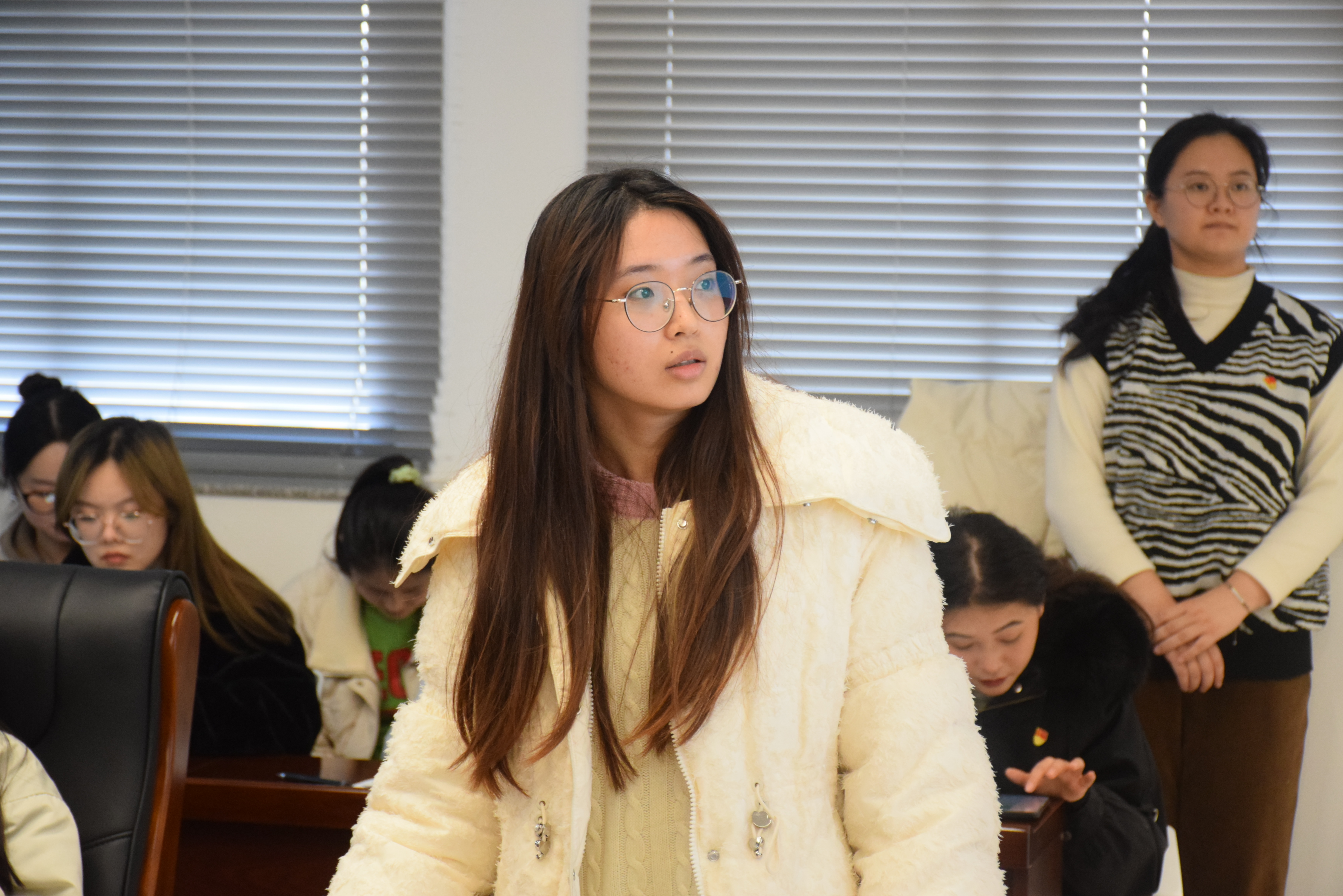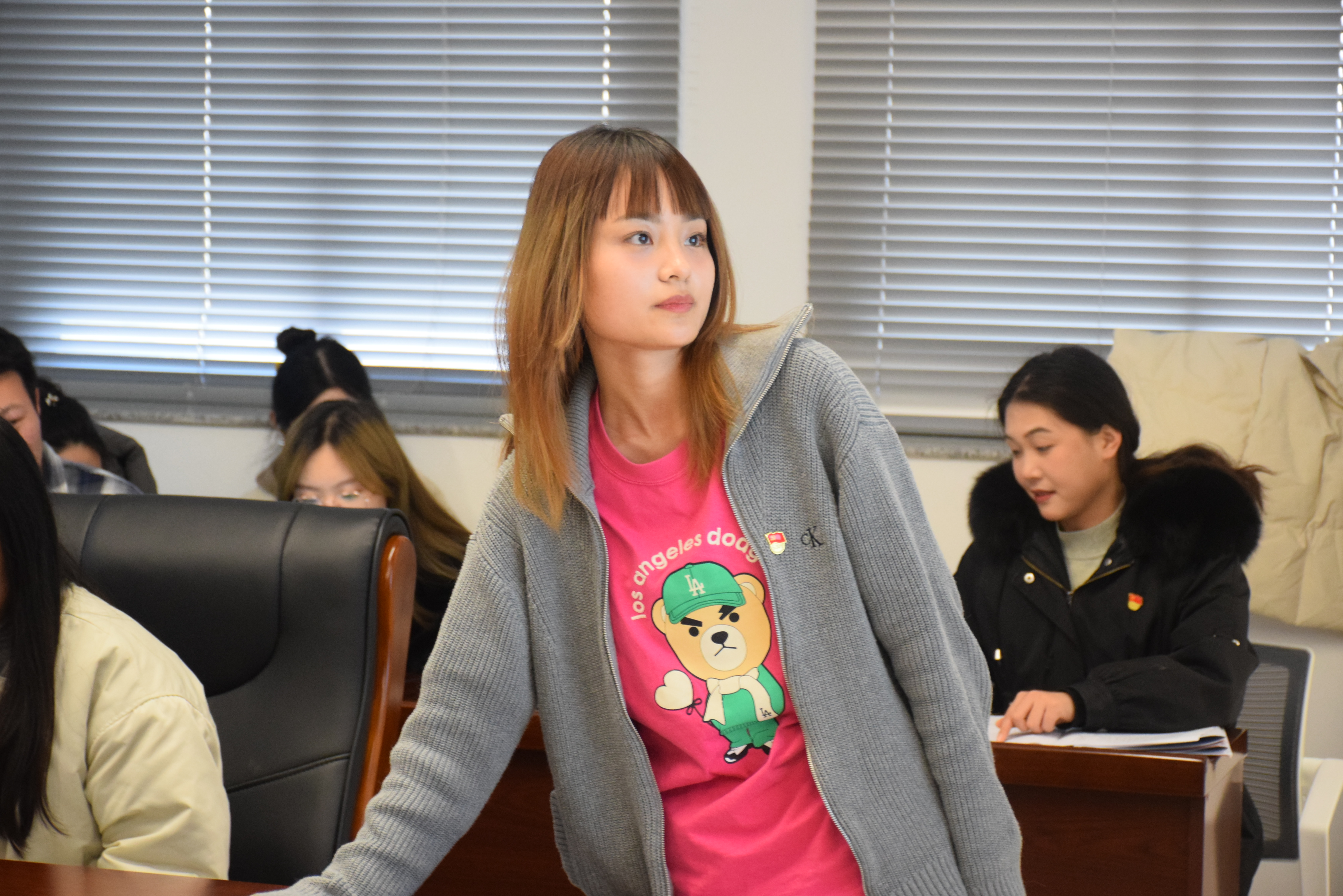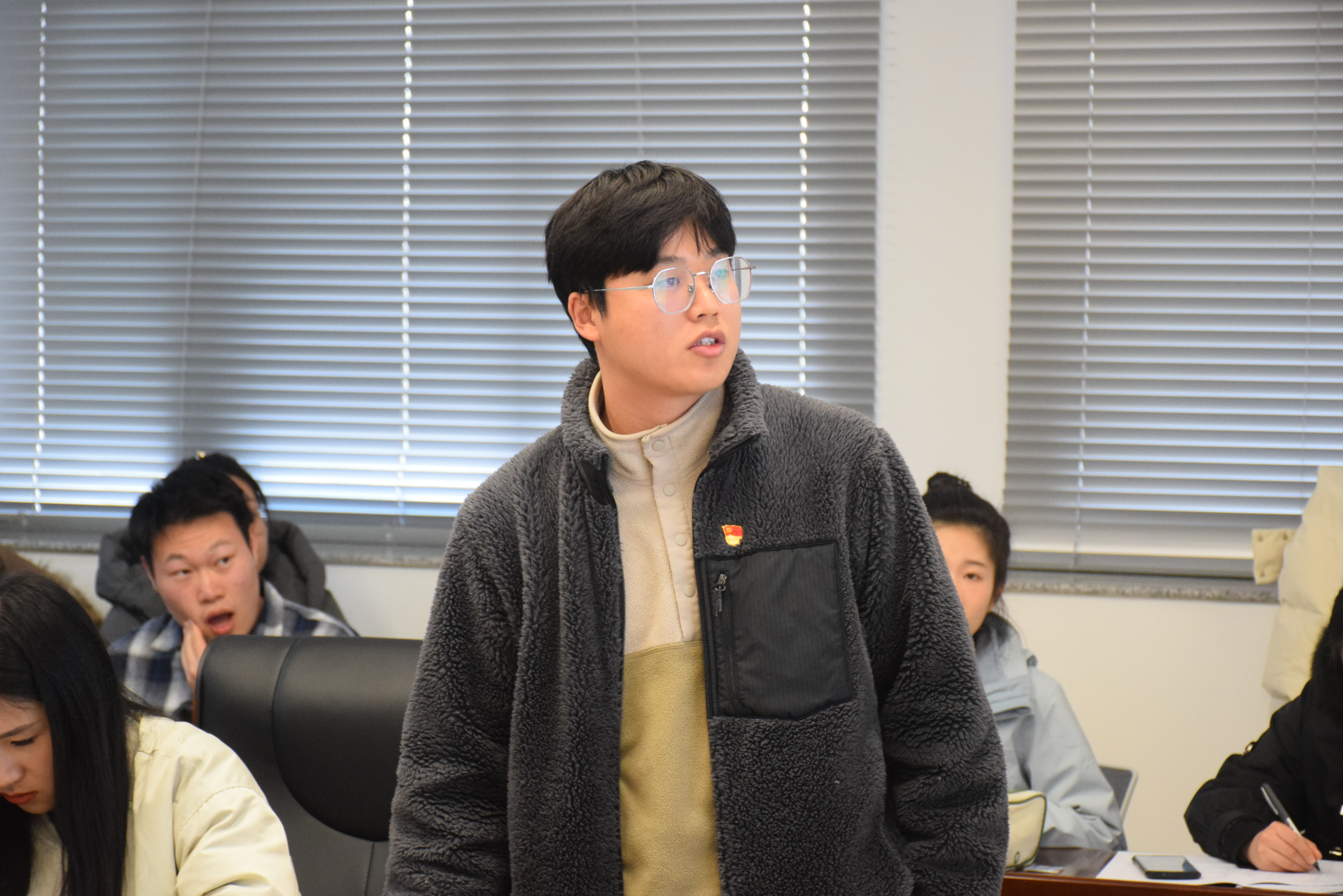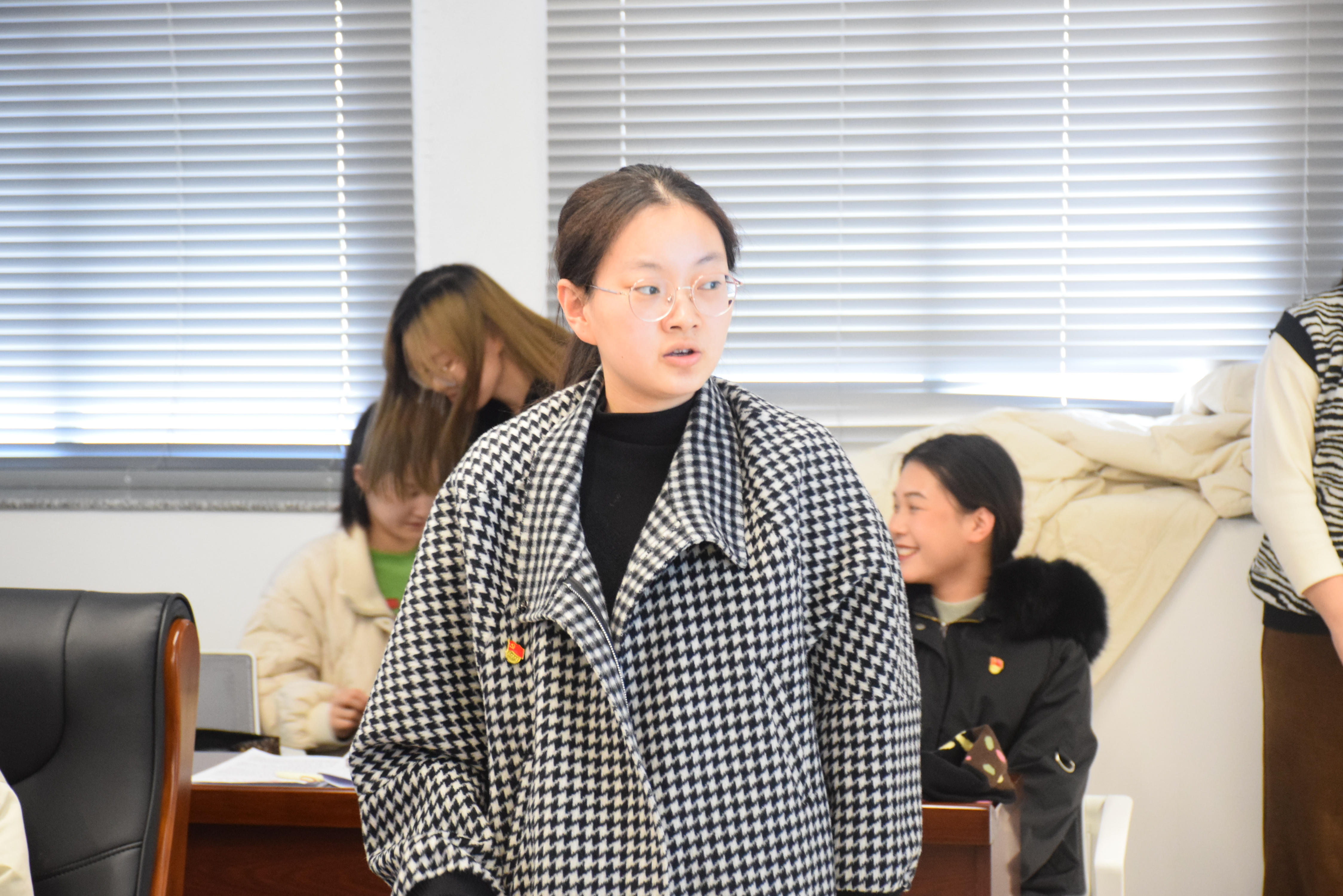 吴春梅首先强调学院党委会加强对学生党员的教育管理,进一步提升党员的思想理论素养水平,并提出党员发展转正答辩制,严把党员发展质量关;其次,鼓励党员同志们要树立终身学习的观念,不断学习党的理论知识,积极参加社会实践,着力提升个人本领;最后,结合学校最新新媒体管理办法以及学生管理规定,对党员同志提出三点要求,第一,严格自我约束管理,严禁学术不端行为;第二,树立正确的网络观,持续推动良好生态网络建设,营造积极健康、向上向善的网络文化;第三,树立大局意识,党员要做到正确认识大局、自觉服从大局、坚决维护大局,自觉为党和人民的事业贡献自己的力量。