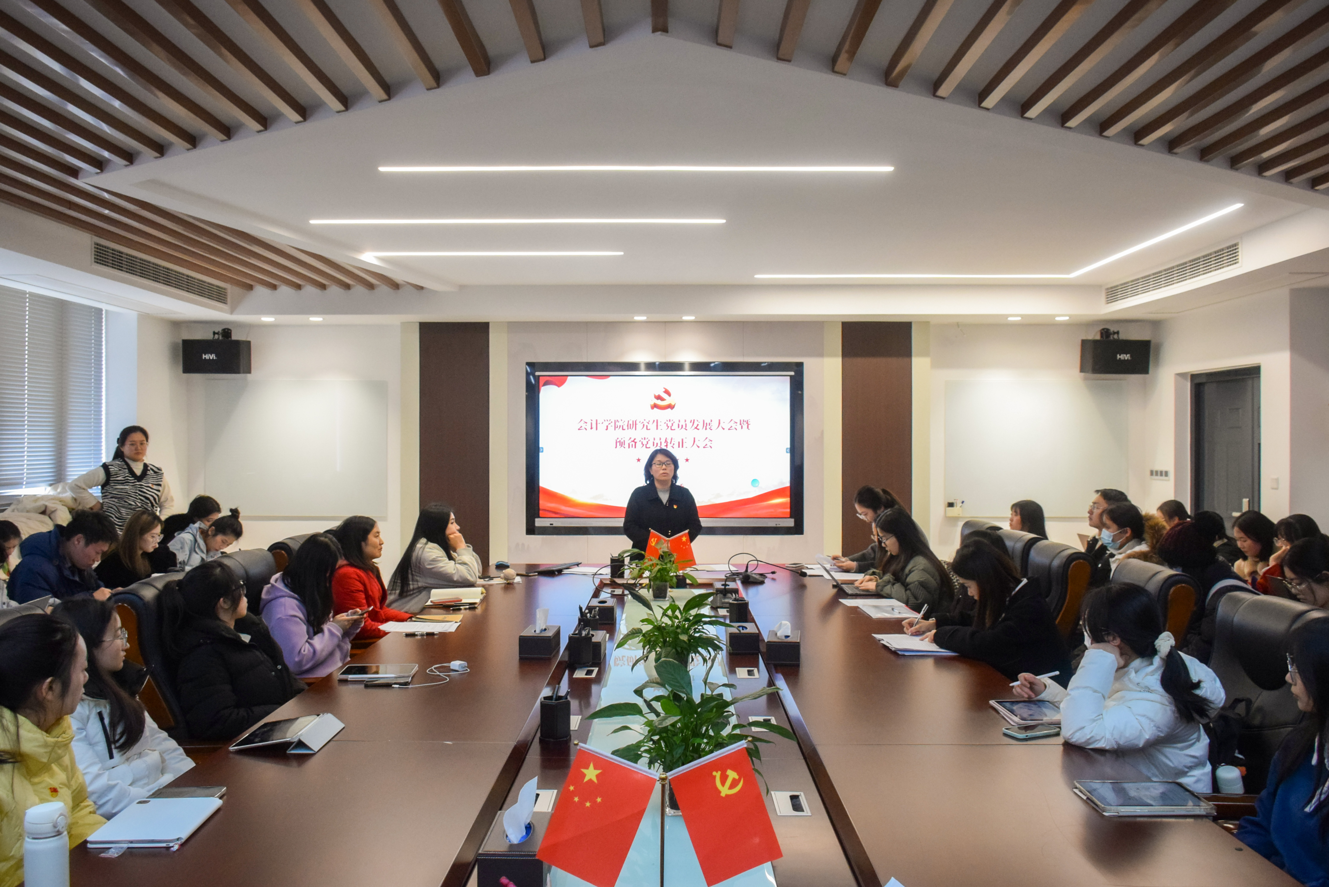为深入学习贯彻习近平新时代中国特色社会主义思想,落实党的二十大精神,进一步加强党员队伍建设,91色情网 党委于近日召开学院研究生党员发展大会暨预备党员转正大会。学院党委书记吴春梅、学科与研究生办公室主任王莹、教学秘书陈晓丹、研究生辅导员肖艳、全体研究生党员以及15位发展对象参加会议,会议由研究生第一党支部委员文灿主持。