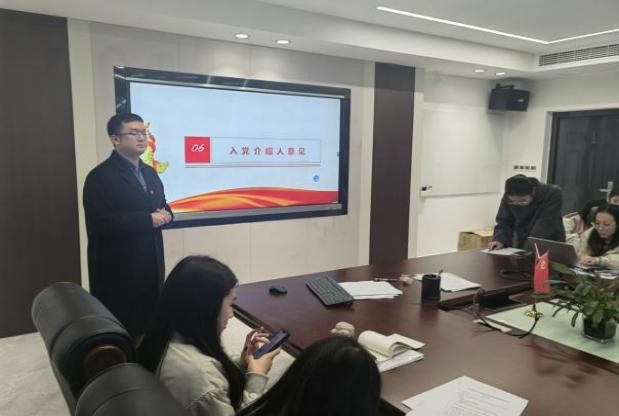 李萌等12名预备党员首先依次向党组织汇报了预备期内个人的主要表现、入党动机和决心并进行现场答辩。