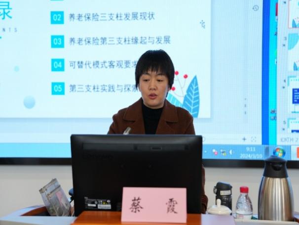 公共管理学院蔡霞副教授作“第三支柱养老保险功能定位与模式选择”专题授课。她介绍了养老保险三支柱的常见概念与发展现状,深入探讨了养老保险第三支柱的缘起与发展,客观分析了可替代模式的客观要求,并对第三支柱的实践与探索进行了讨论,为学员们在养老保险领域的研究和实践提供了有益启示。