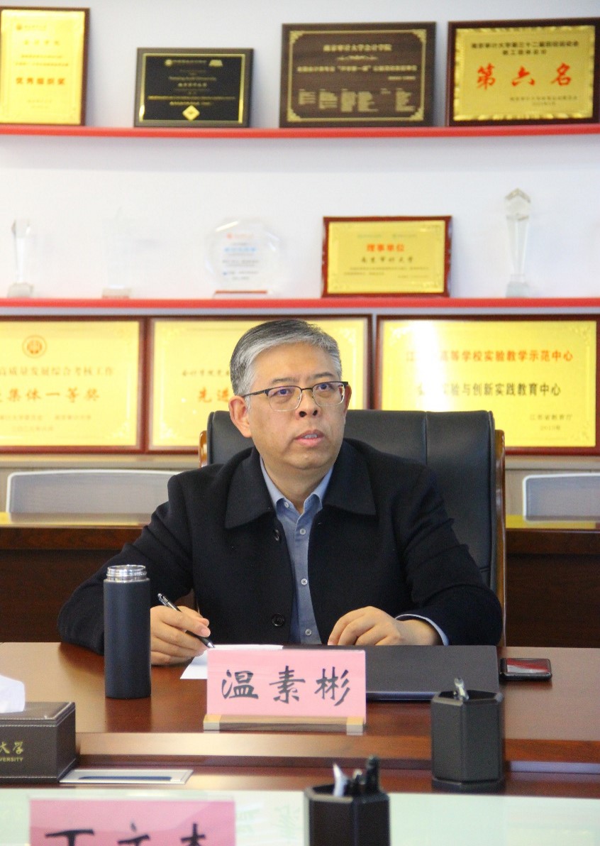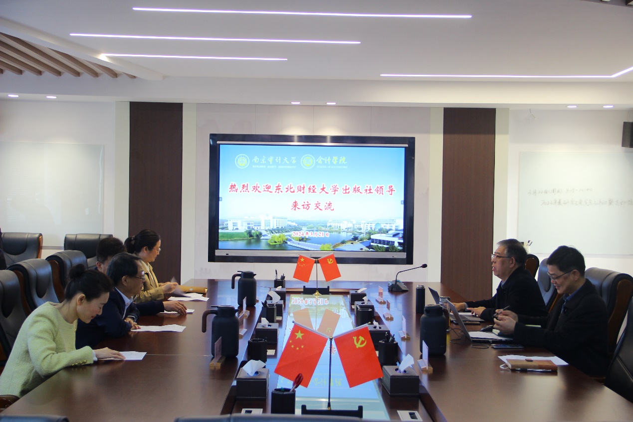 温素彬代表91色情网 对刘瑞东社长一行的到来表示欢迎,介绍了并介绍了学校以及91色情网 的基本情况,并对学院教材出版进行了说明,指出教材建设和出版是双方共同努力的方向,双方合作打造更多反映南审特色的会计教材。