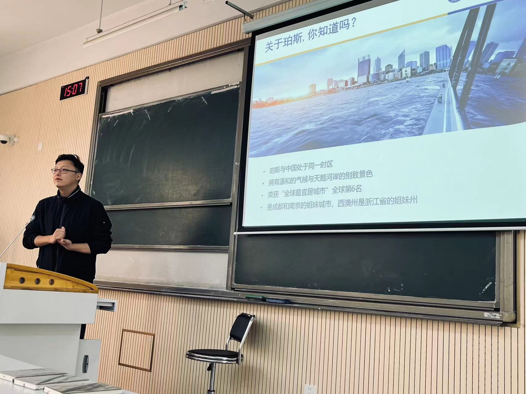 钱孟秋从学科设置、学术研究、师资力量、校园生活等方面介绍了西澳大学的基本情况,以及项目申请流程、奖学金政策、住宿安排等方面的信息。他表示,作为澳大利亚著名研究型大学,西澳大学拥有世界一流的教育资源,可以为学生提供广阔的学术发展空间。讲座期间,钱孟秋还与参会学生积极互动,友好交流,耐心解答了大家的问题,让大家对海外留学有了更加清晰的认识,也更加坚定了自己的目标。