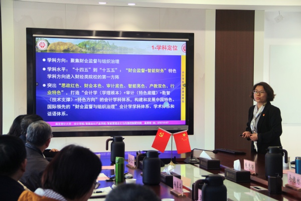 吴春梅汇报91色情网 学科建设定位、建设目标、现状水平、人才培养现状、发展战略举措,并对照优质化建设工作自评表,介绍91色情网 2024年的工作重心、工作方向以及工作的难点和困惑,期待校关工委指导做好本科教育教学审核评估、青年教师能力提升、学生就业观引导等工作。
