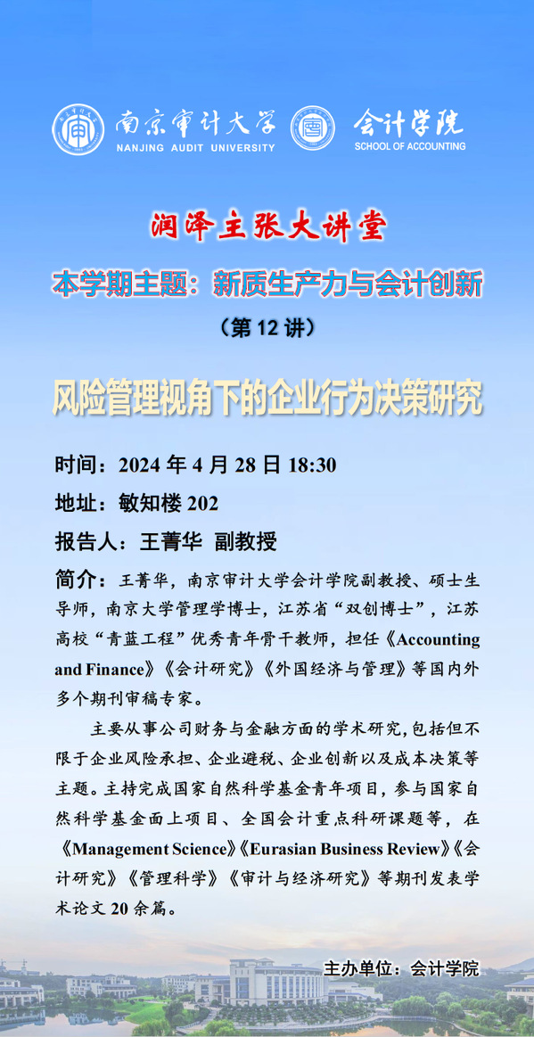 润泽主张大讲堂(第12讲):王菁华 ——风险管理视角下的企业行为决策研究