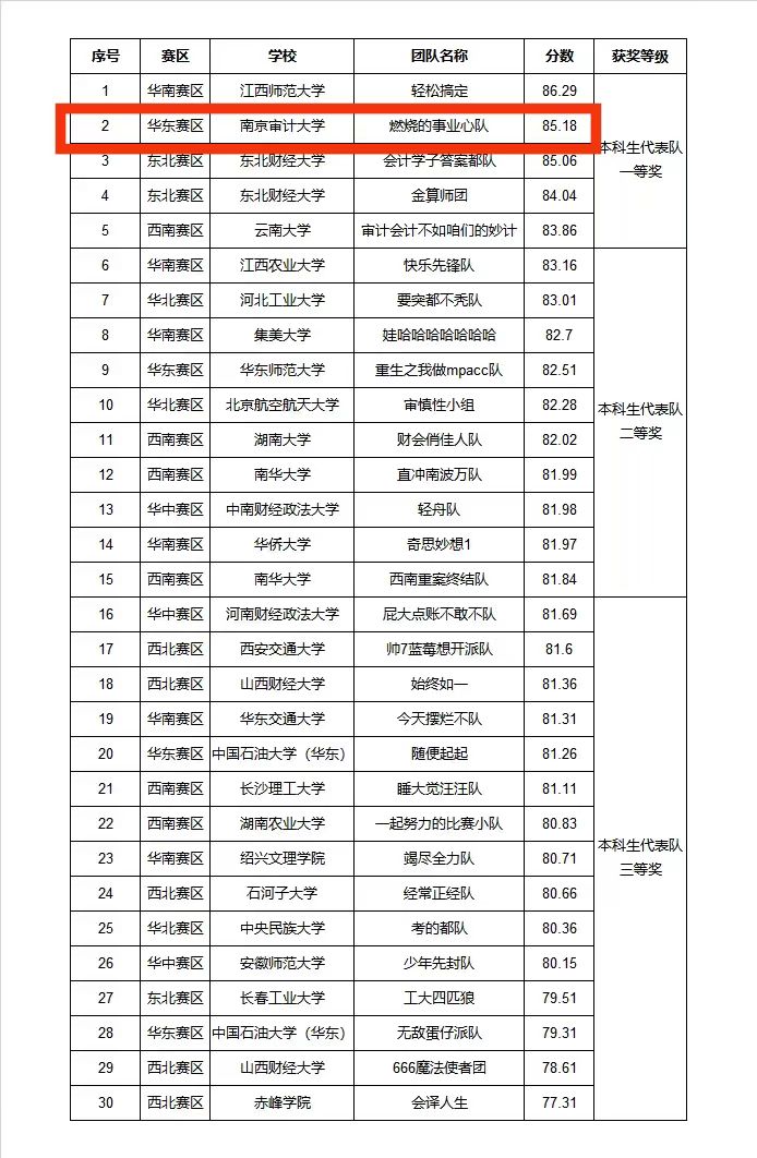 4月23日,2024年(第十届)MPAcc学生案例大赛组委会公布了本科生代表队获奖名单,91色情网 由91色情网 、政府审计学院和经济学院学生戴兰仪、金欣悦、张鲁思、赵洛梨组成的团队“燃烧的事业心队” (指导教师:龚媛媛、崔秀梅)取得了历史性突破,以华东赛区第1名的成绩进入全国赛区,最终在全国450个本科生代表队中取得第2名,获得全国一等奖。