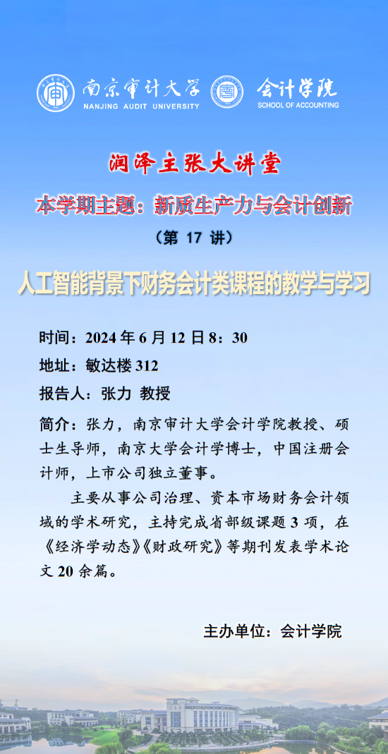 润泽主张大讲堂(第 17 讲):张力——人工智能背景下财务会计类课程的教学与学习