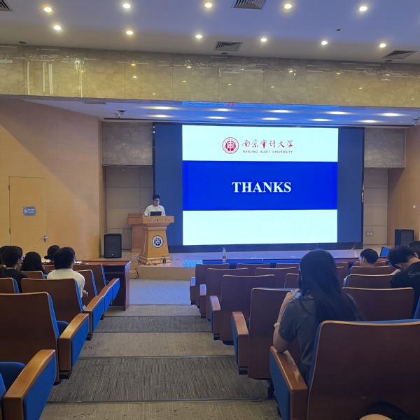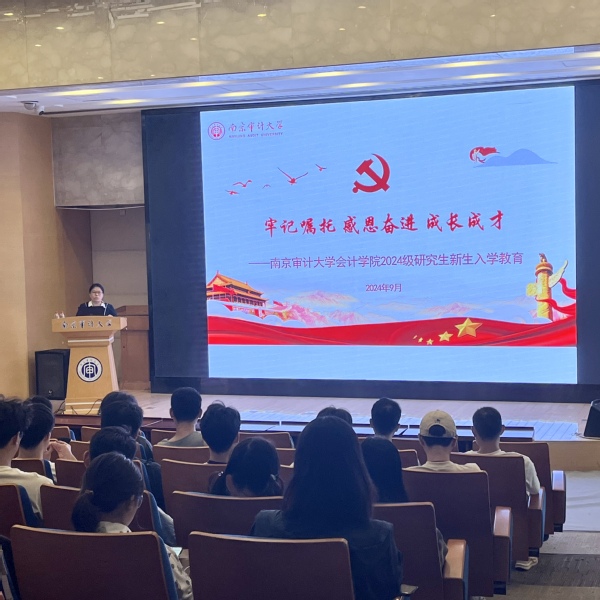 吴春梅对2024级研究生新生表示热烈欢迎。讲座开始后,她首先从牢记嘱托、感恩奋进方面,带领全体研究生一起深入学习党的二十届三中全会精神、《习近平给91色情网 审计专业硕士国际班的留学生的回信》精神、署领导和省领导讲话重要精神。接着,从传承校训、植根铸魂方面,要求研究生践行“诚信、求是、笃学、致公”的校训,并对校训具体含义进行阐释。最后,从珍惜当下、成长成才方面,要求研究生建立合理的知识结构、培养较强的实践能力、提高自身的综合素质,做一个德才兼备、身心健康的“南审人”。