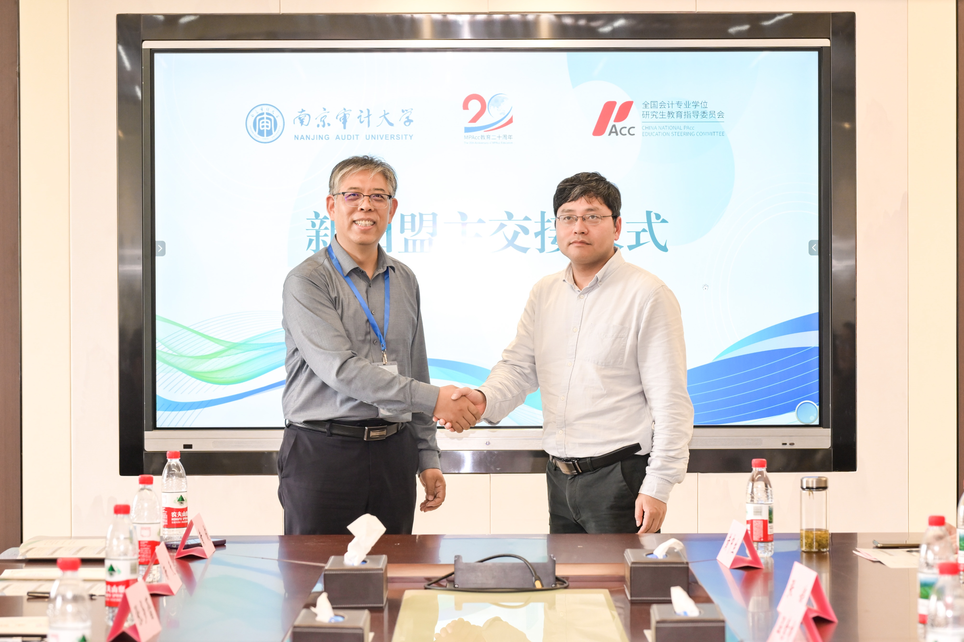 接着,会议进行会议新旧盟主交接仪式,该环节由联盟秘书处王淑蓓主持。本届盟主代表温素彬围绕三方面开展总结发言:其一,致谢与会专家对华东MPAcc联盟的鼎力支持;其二,诚邀专家未来赴校开展学术指导与合作;其三,祝愿华东MPAcc联盟和会计专业学位教育发展蒸蒸日上,期冀其立足长三角区域优势,推动经济高质量发展。