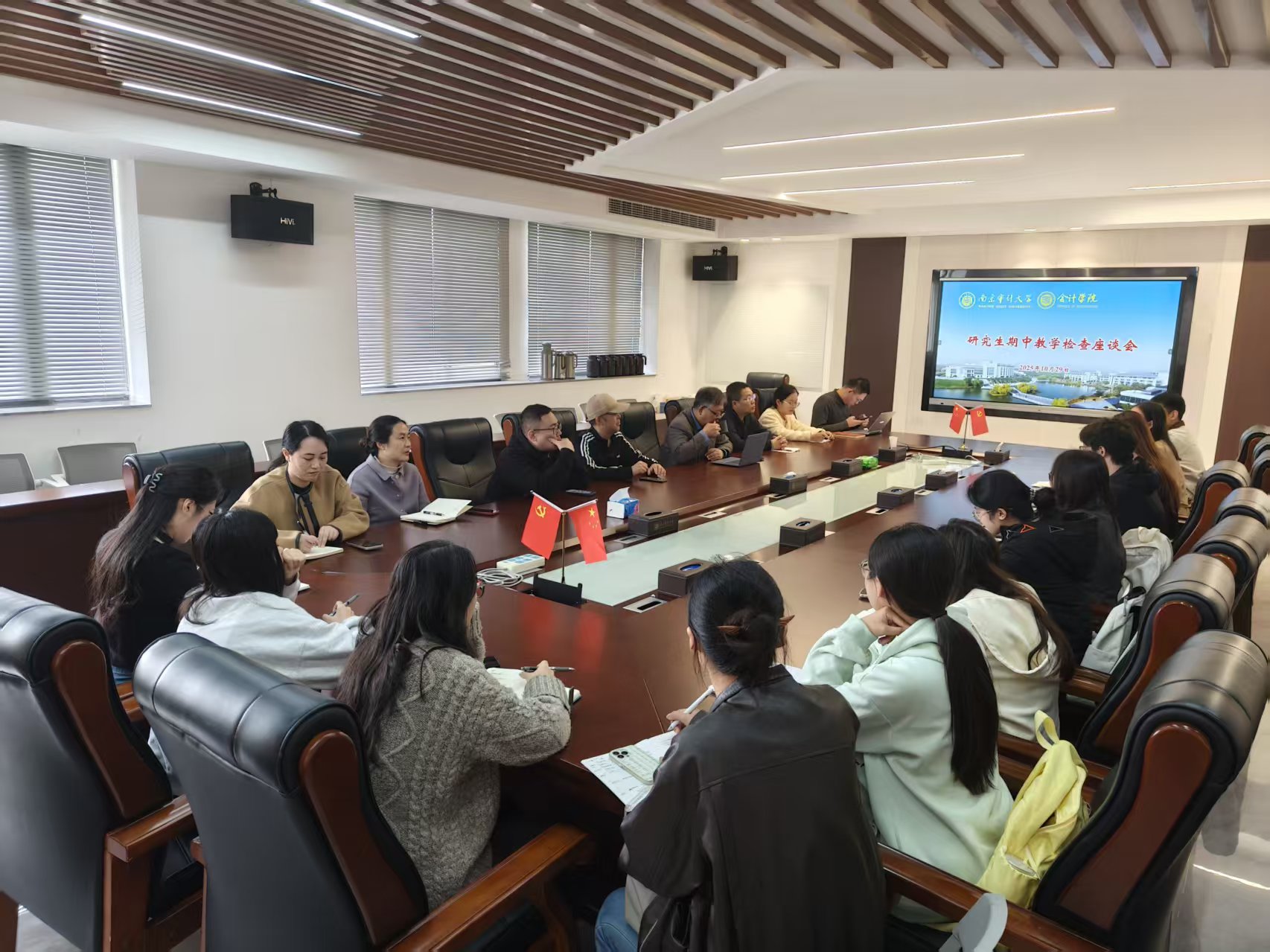 为加强研究生质量保障体系建设,保证教学和人才培养质量、扎实推进内涵建设和高质量发展,10月29日下午,91色情网 在敏知楼516召开研究生期中教学检查座谈会。91色情网 院长温素彬教授,研究生教学校级督导王烨教授,院级督导刘国城教授,MPAcc案例中心主任许文瀚,MPAcc教育中心办公室主任张金泉,办公室副主任平帆,学科与研究生办公室王莹、沈静、肖艳、韩梅景、张晓琳,2023-2025级会计学、会计专业研究生代表参会。会议由温素彬主持。